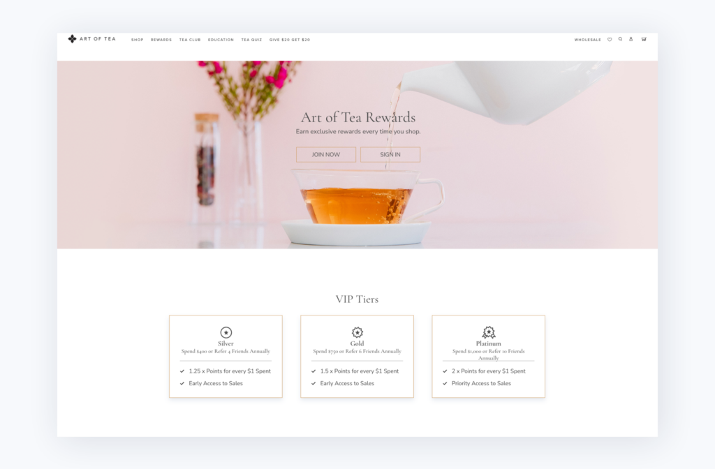 Sebagian besar prosesnya adalah melakukan wawancara dengan mitra teknologi dan mencoba menemukan yang tepat. Wawancara dengan Yotpo adalah langkah besar. Dengan semua yang kami pelajari, loyalitas bukanlah hal yang sulit bagi kami sebagai bisnis D2C. Seperti Art of Tea, saat ini setengah dari bisnis kami adalah langsung ke konsumen dan setengahnya lagi adalah distribusi ritel. Dan dengan perpecahan itu, masuk akal bagi kami untuk meluncurkan program loyalitas.