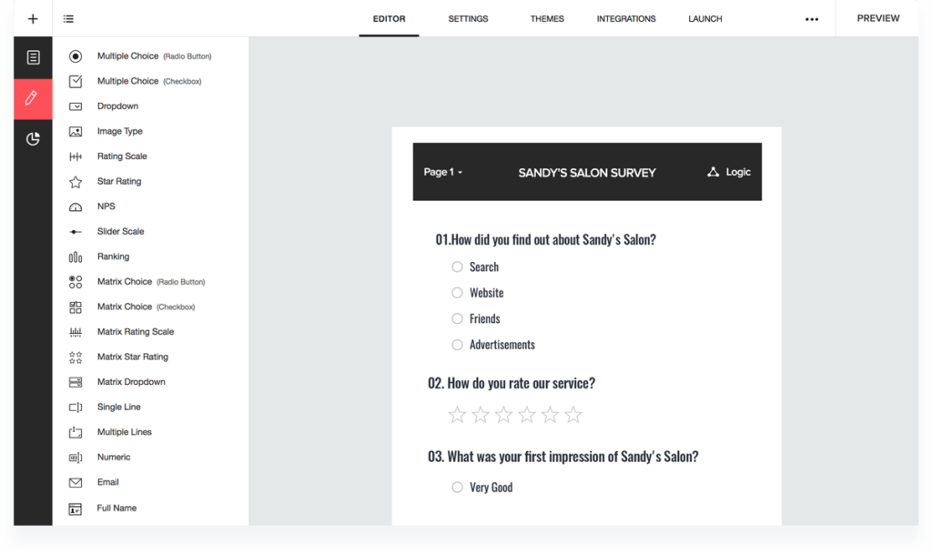 Dengan lebih dari 25 jenis pertanyaan dan fitur termasuk melewatkan logika dan pemipaan, sehingga Anda dapat membuat survei yang sempurna. Bagikan survei Anda secara instan dengan semua orang yang termasuk dalam daftar Anda, atau melalui media sosial dan kampanye email.