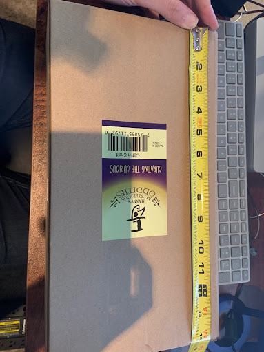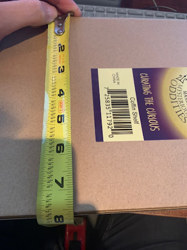 Jadi, bagaimana saya memperbaiki situasi ini? Hal pertama yang saya lakukan adalah mendapatkan pita pengukur dan mengukur kotak rak peti mati untuk memastikan saya memiliki dimensi yang tepat dan memotretnya untuk Amazon.