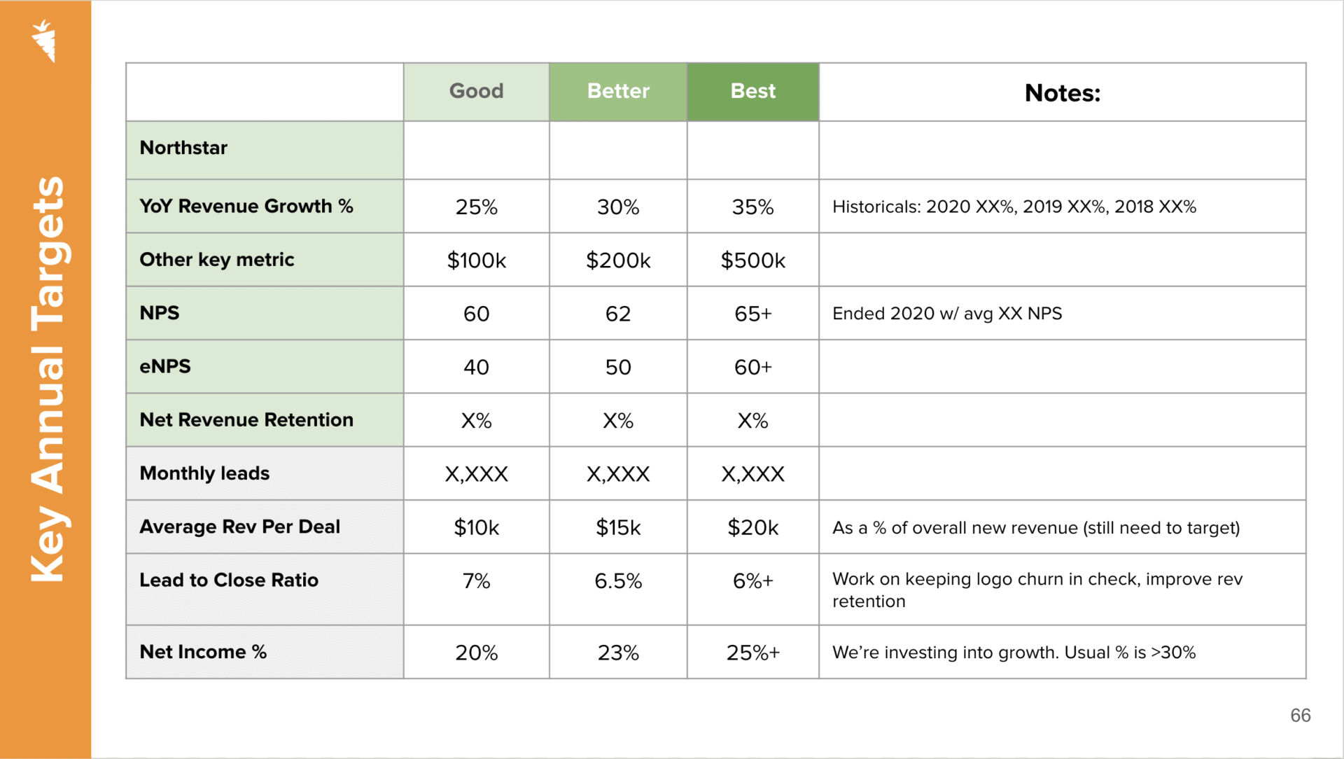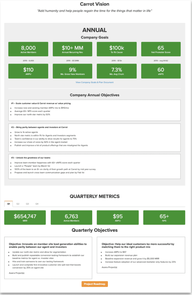 Kerjakan tujuan tahunan Anda ke belakang. Kami menggunakan model yang bagus, lebih baik, dan terbaik di Wortel…