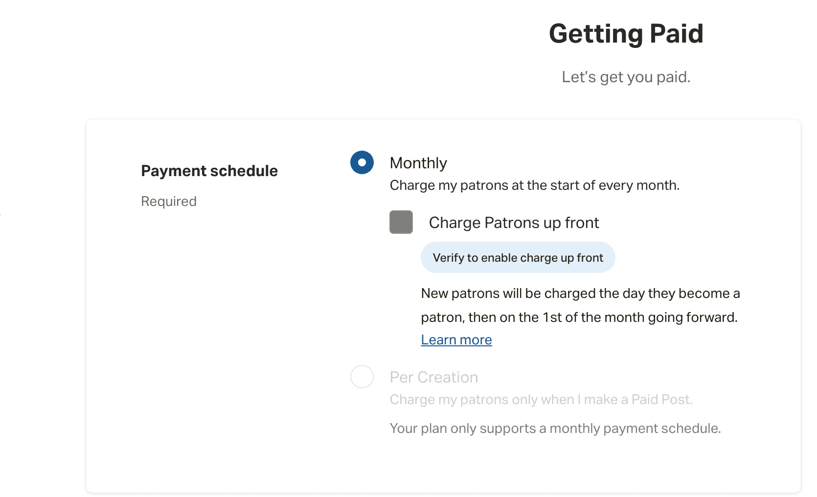 Patreon menawarkan tiga rencana. Anda dapat mendaftar untuk ketiganya secara gratis, tetapi masing-masing mengharuskan Anda membayar komisi yang berbeda.