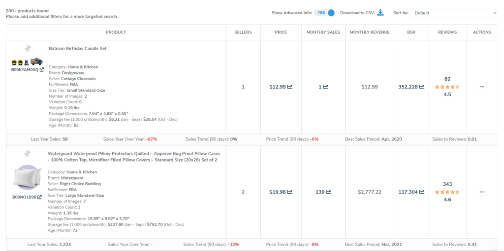 Kedua alat tersebut menawarkan cara mudah untuk memeriksa produk Amazon yang ada berdasarkan volume pencarian dan berbagai parameter lainnya. Keduanya menawarkan wawasan tentang musim/bulan mana yang merupakan bulan terlaris untuk ceruk tertentu.