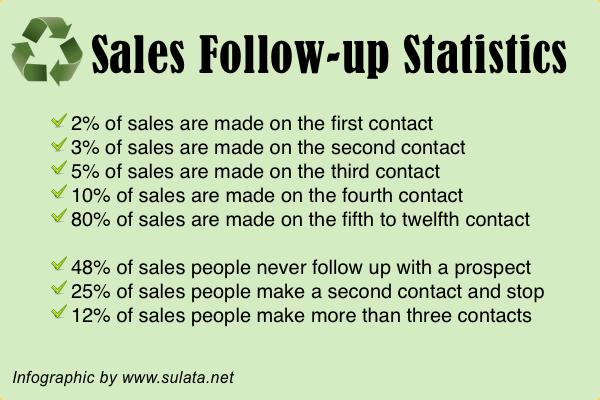 - Tindak lanjuti setiap hari selama 5 hari, tetapi bagi tindak lanjut tersebut di antara media yang berbeda (telepon, email, teks, surat).