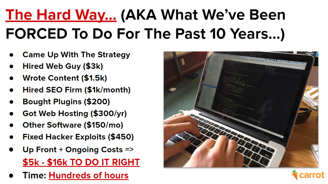 Anda dapat mencoba membangun situs ini sendiri, atau Anda bisa mendapatkan situs Wortel yang terbukti dapat dikonversi hanya dengan $69 per bulan (dengan jaminan uang kembali 30 hari!).