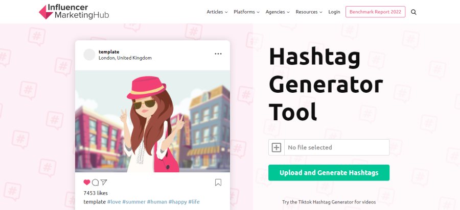 Ini adalah generator tagar terbaik untuk orang-orang yang ingin memposting baik di Instagram maupun Twitter. Bagian terbaiknya adalah Anda tidak perlu mengetikkan kata kunci, melainkan mengunggah postingan itu sendiri. Bergantung pada tampilan posting, situs web akan memutuskan tagar apa yang paling cocok berdasarkan riwayat mereka sebelumnya.