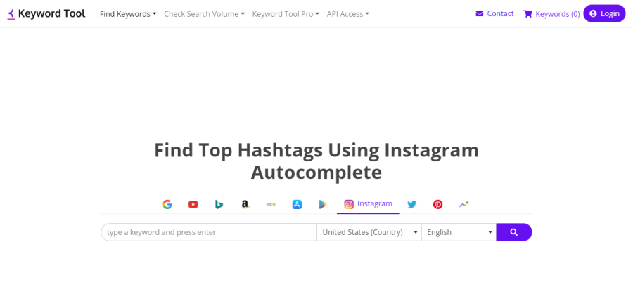 Aplikasi ini memiliki bagian khusus untuk Twitter dan bagian terpisah untuk Instagram. Namun, generator tagar Instagram tangan pertama mereka gratis. Anda hanya perlu mengetikkan kata kunci Anda dan Anda akan mendapatkan daftar tagar teratas yang digunakan tentangnya.