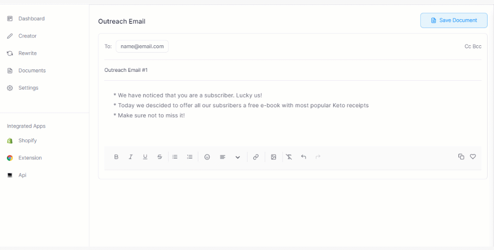 - Manfaatkan penulisan manual dan yang dihasilkan AI secara bersamaan dalam kanvas yang dapat diedit yang sama.