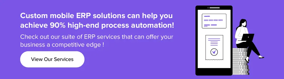 Diterbitkan: 2023-06-02Mengejar keunggulan kompetitif, keunggulan operasional, dan prospek yang menggiurkan dalam lanskap bisnis yang terus berkembang adalah pencarian tanpa akhir. Karena pasar menjadi semakin ramai dengan calon bisnis yang mencari kesuksesan yang sama, perusahaan harus melengkapi diri mereka dengan solusi ERP mobile yang dipesan lebih dahulu yang disesuaikan dengan kebutuhan unik mereka. Alat transformatif ini akan meningkatkan posisi mereka dalam ekosistem yang kompetitif ini dan memberdayakan mereka untuk mendobrak status quo saat ini.