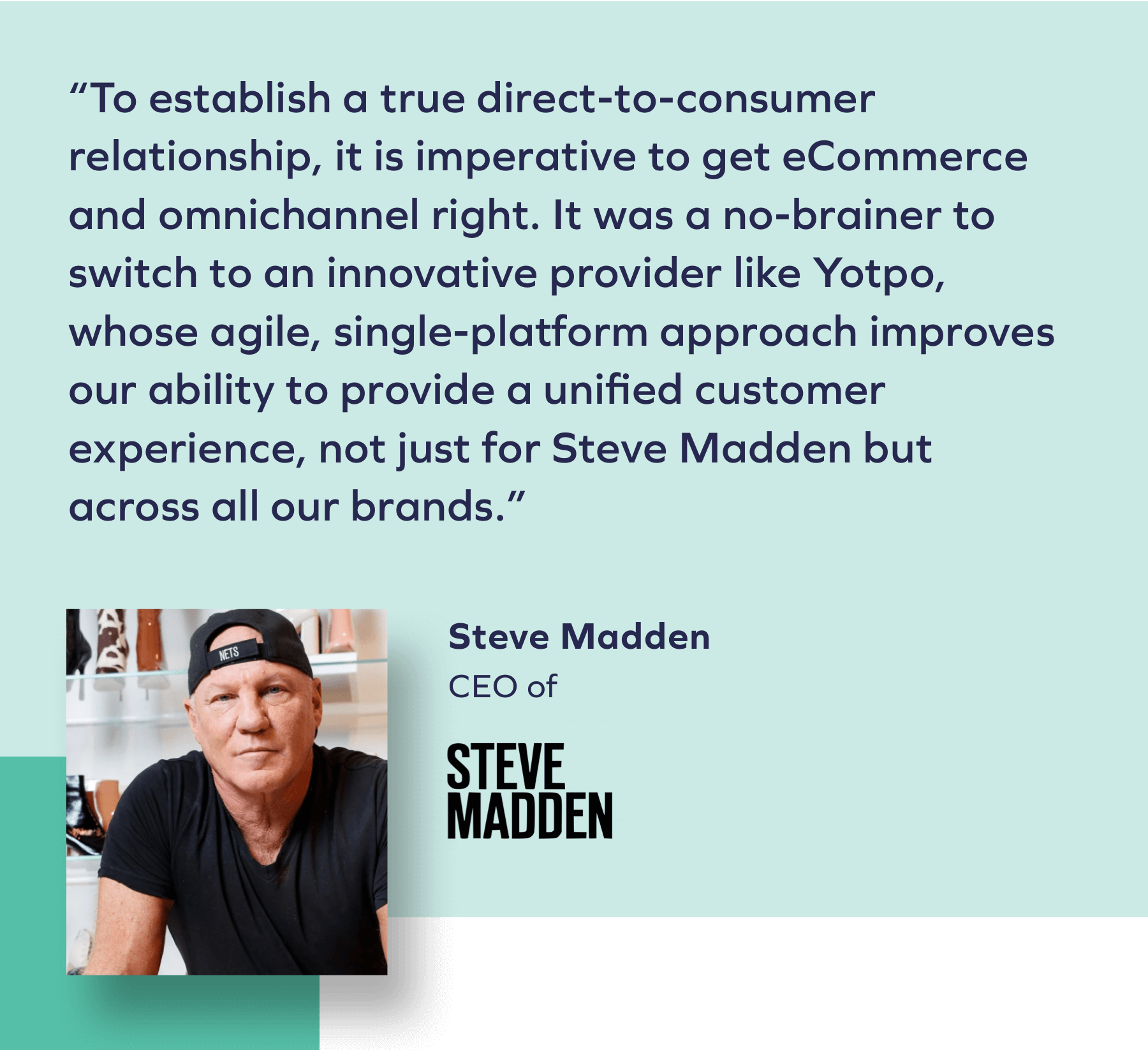 Mengetahui bisnis ritel-pertama mereka perlu terus berkembang untuk mengikuti laju cepat industri, Steve Madden melihat ke Yotpo untuk pergeseran D2C yang strategis.