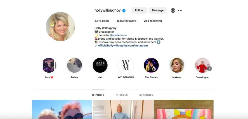 Holly Willoughby memulai sebagai presenter TV dan sejak itu beralih menjadi blogger kecantikan dan membagikan ulasan produk, tips makeup, dan konten kecantikan lainnya di Instagram-nya. Dia juga merupakan duta merek untuk merek kecantikan besar seperti Garnier.