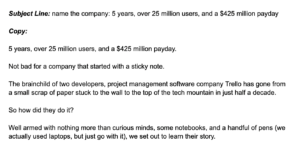 Bukti, bukti, bukti. Bagus dalam konten pemasaran apa pun, bagus dalam undangan webinar. Baris subjek menarik dan data segera membangun kredibilitas. $ 425 juta dalam penjualan? Orang-orang ini harus tahu apa yang mereka lakukan. Saya ingin mendengar tips apa yang mereka tawarkan.
