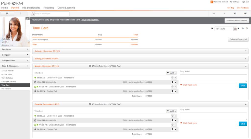 Con Paycom, i dipendenti possono gestire timecard, spese, PTO, benefit e altro ancora.