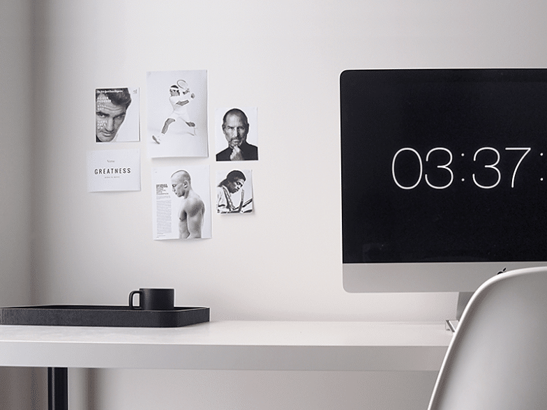 Anche se questa configurazione non fa per te, puoi portare l'idea di ispirazione nel tuo spazio di lavoro. Metti del nastro adesivo su alcune foto, citazioni o persone a cui ti ispiri quando perdi la concentrazione o hai bisogno di una motivazione in più!