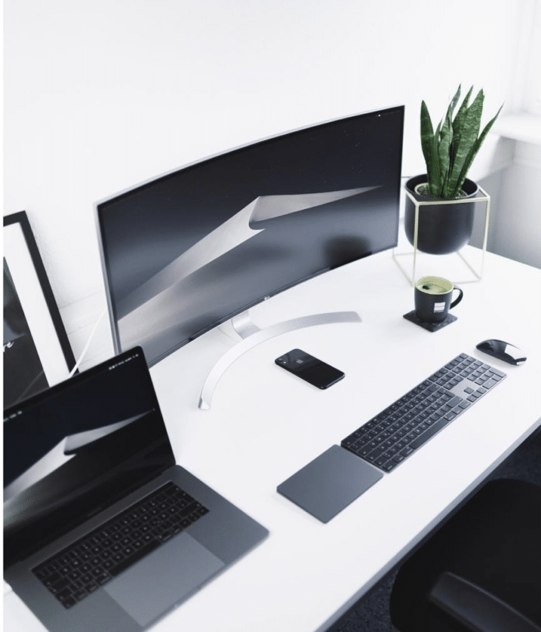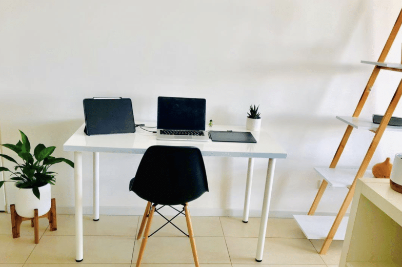 Limitare la quantità di distrazioni intorno a te e avere solo il tuo laptop, carta e penna e alcune piante potrebbero essere tutto ciò di cui hai bisogno per il tuo spazio di lavoro.