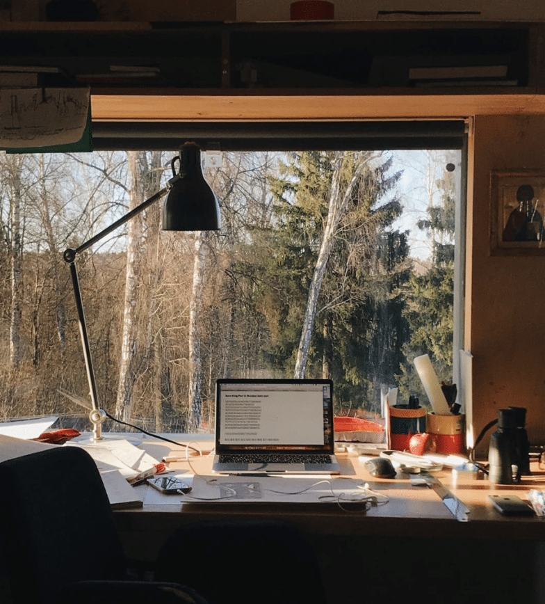 Ogni spazio di lavoro ha bisogno di luce naturale. Gravito sempre verso un posto comodo vicino a una finestra della mia casa, quindi ho scelto il punto più luminoso della casa per il mio ufficio a casa.