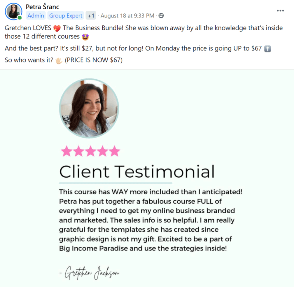 Ecco un suggerimento: se hai un prodotto o un servizio, valuta la possibilità di taggare i tuoi clienti nelle testimonianze o nelle storie di successo. Questo non solo offre ai tuoi clienti la possibilità di brillare, ma fornisce anche una prova sociale per il tuo prodotto o servizio.