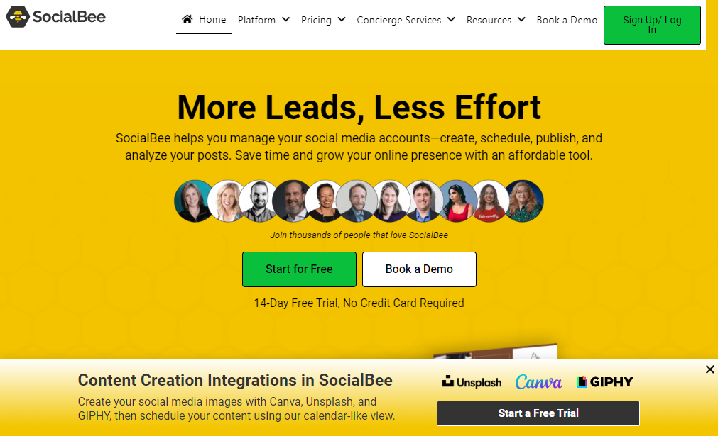 SocialBee è una piattaforma di gestione dei social media che aiuta i team di marketing a gestire i propri account sui social media. Usando SocialBee, puoi creare, programmare, pubblicare e analizzare i tuoi post su vari canali, come Facebook, Pinterest, YouTube, Instagram, TikTok, ecc.