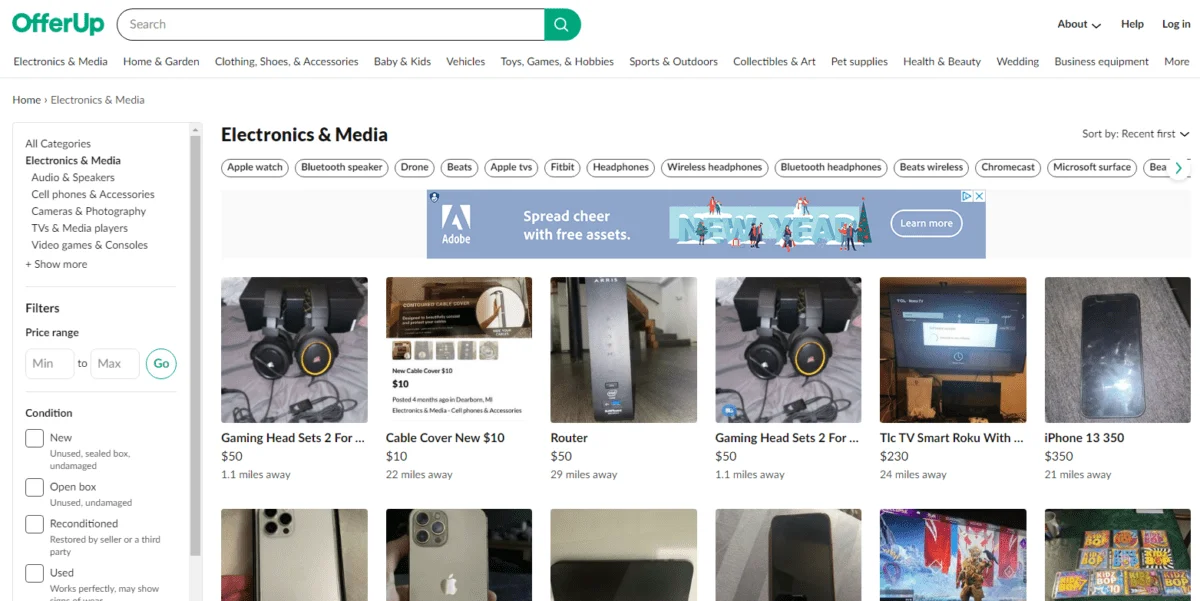 OfferUp è un mercato digitale per qualsiasi cosa. L'elettronica è solo una delle categorie in cui puoi pubblicare articoli da vendere direttamente agli acquirenti. OfferUp supporta la comunicazione aperta per le vendite locali e la spedizione di articoli, rendendolo un'opzione flessibile per trasformare i gadget indesiderati in denaro. Questa può essere una buona opzione per prodotti a bassa richiesta come telefoni Android, Kindle o router wireless.