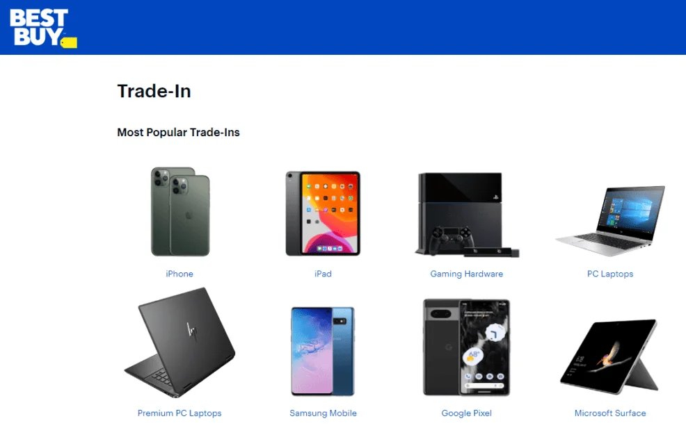 Best Buy accetta un'ampia varietà di prodotti elettronici per il servizio di addestramento, tra cui: