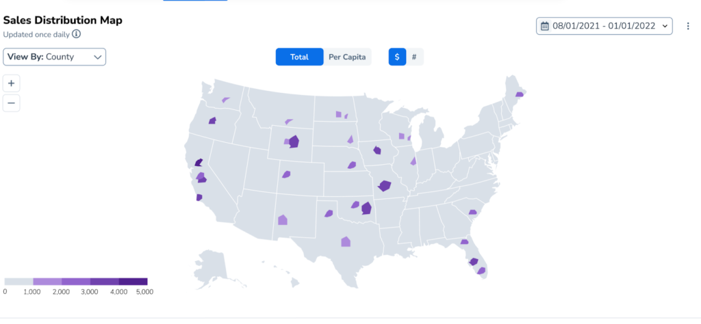 Questo nuovo widget della mappa termica incentrato sulle vendite mostrerà ai venditori statunitensi dove stanno vendendo più forte e le aree in cui potrebbero avere vendite più elevate per una particolare popolazione di persone.