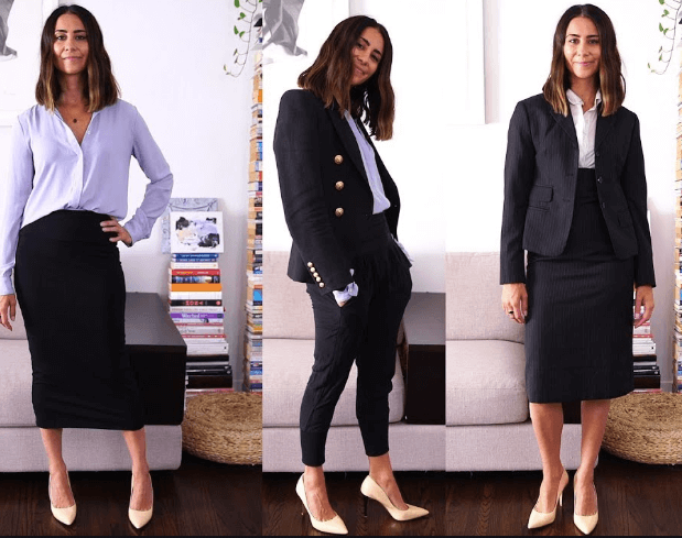 Di solito, il codice di abbigliamento delle donne può qualificarsi come business casual se indossano una combinazione di gonne, giacche, camicette, scarpe chiuse e vari altri articoli.