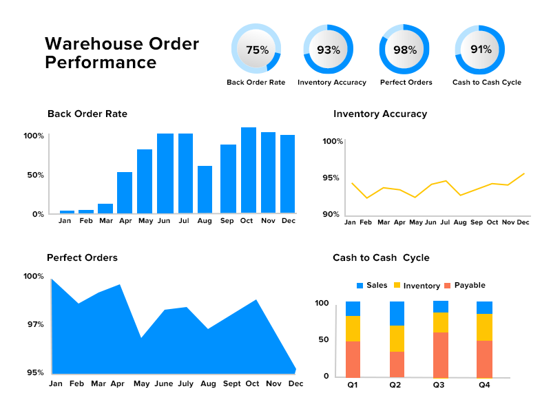 Ecco come sfruttare la Business Intelligence integrata nel ciclo di prodotti quotidiano. Di seguito sono riportati alcuni cicli di routine della catena di approvvigionamento che puoi facilmente monitorare con la tua applicazione BI incorporata.