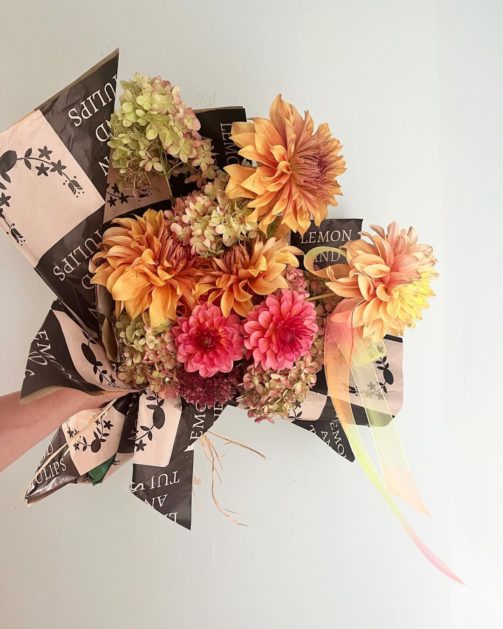 Il negozio di fiori Lemon & Tulips utilizza la carta velina kraft di Noissue per i suoi bouquet.