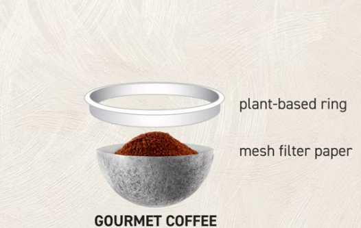San Francisco Bay Coffee produce le sue cialde di caffè con un prodotto di cellulosa sicuro per gli alimenti e privo di allergeni nel tentativo di liberare il mondo dalle cialde di plastica monouso.