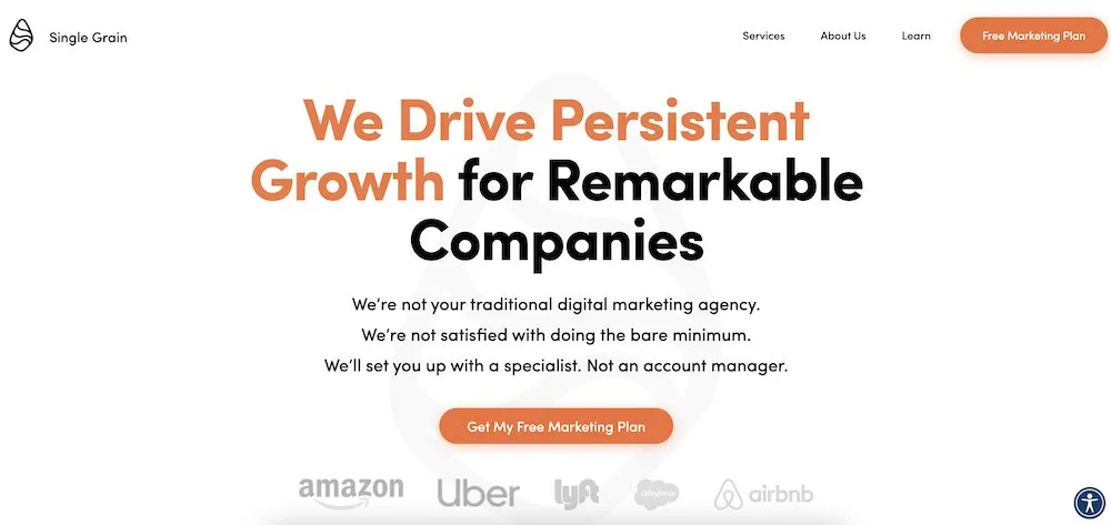 Single Grain è un'agenzia specializzata in copywriting per l'e-commerce che lavora con i migliori marchi di e-commerce per migliorare le loro prestazioni di marketing. Se stai cercando un'agenzia specializzata in e-commerce e con una buona esperienza di lavoro con clienti in più settori, Single Grain potrebbe essere la scelta giusta per te.
