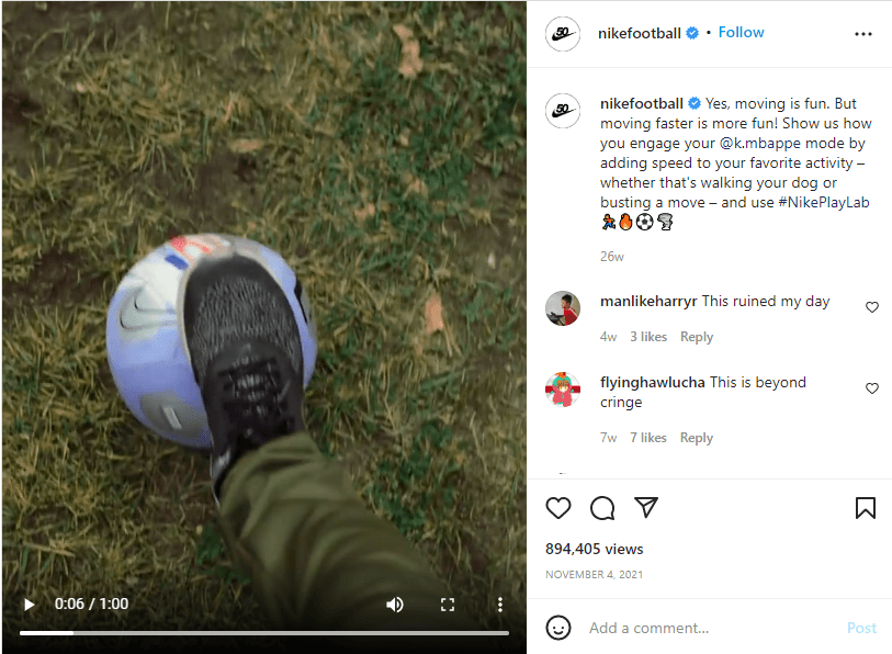 Le celebrità potrebbero persino aiutarti a creare un nuovo prodotto in co-branding, come la sneaker in co-branding di Nike con LeBron James e Kylian Mbappe. Il marchio ha pubblicato e taggato le celebrità sui social media con video di bambini che praticano sport mentre indossano le scarpe.