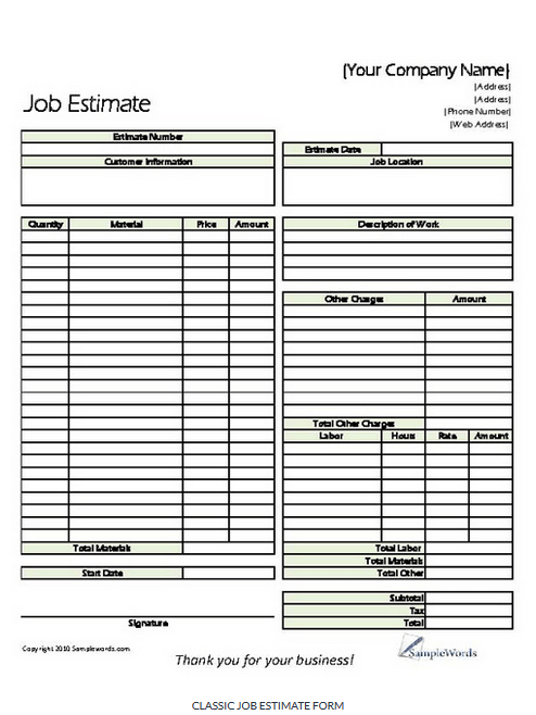 Vuoi il modulo di stima più modesto per conciatetti, appaltatori, idraulici o qualsiasi lavoro?