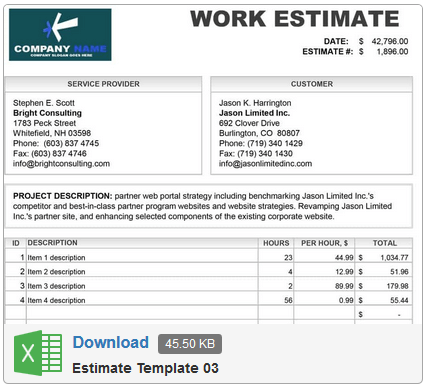 Ecco un'altra vasta raccolta di modelli di moduli di stima dall'aspetto moderno.
