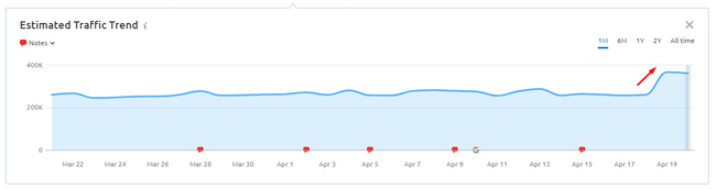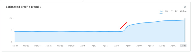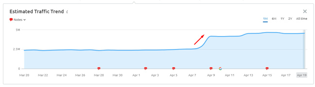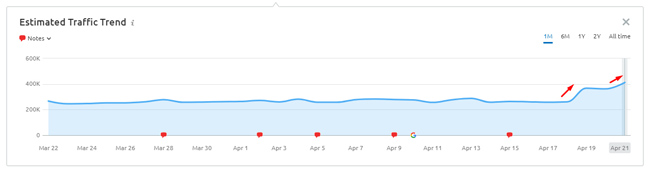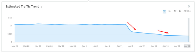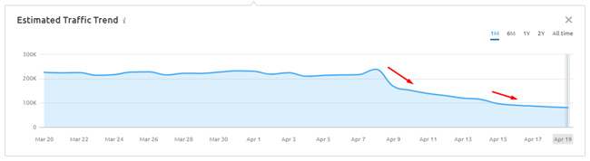 Ecco alcuni esempi di movimento in ritardo per due siti incentrati sulle recensioni (entrambi a partire dal 19/4). Ricorda, l'aggiornamento è stato lanciato l'8/4: