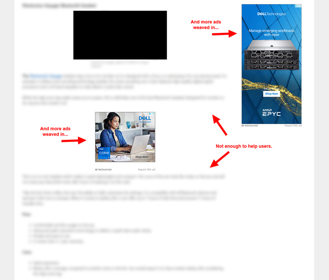 Contenuto insufficiente per aiutare i consumatori e la pagina è inondata di annunci (oltre ai contenuti di affiliazione):