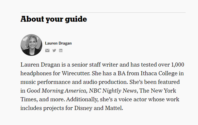 D'altra parte, c'erano siti che hanno funzionato bene durante questo aggiornamento che avevano recensioni scritte da esperti o appassionati e fornivano solide informazioni sull'autore sulla pagina o sul sito (tramite una biografia). Ciò rafforza definitivamente per gli utenti che il contenuto è almeno scritto da qualcuno con esperienza nell'argomento. Ciò non significa che il contenuto sia eccezionale... quella persona ha ancora bisogno di scrivere un post di valore, ma è importante che gli utenti imparino di più sulla persona che scrive il contenuto.