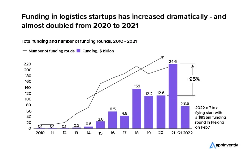 In tali circostanze vincenti, lavorare sulla tua startup logistica sarebbe un'ottima idea. Tuttavia, trovare un investitore per la tua attività di logistica potrebbe essere ancora una sfida solida. Ma non ti preoccupare; questo articolo ti fa familiarizzare con dove si trovano gli attuali investimenti del mercato logistico e ti guida su come ottenere investitori per la tua startup logistica. Quindi assicurati di rimanere sintonizzato fino alla fine. Cominciamo.