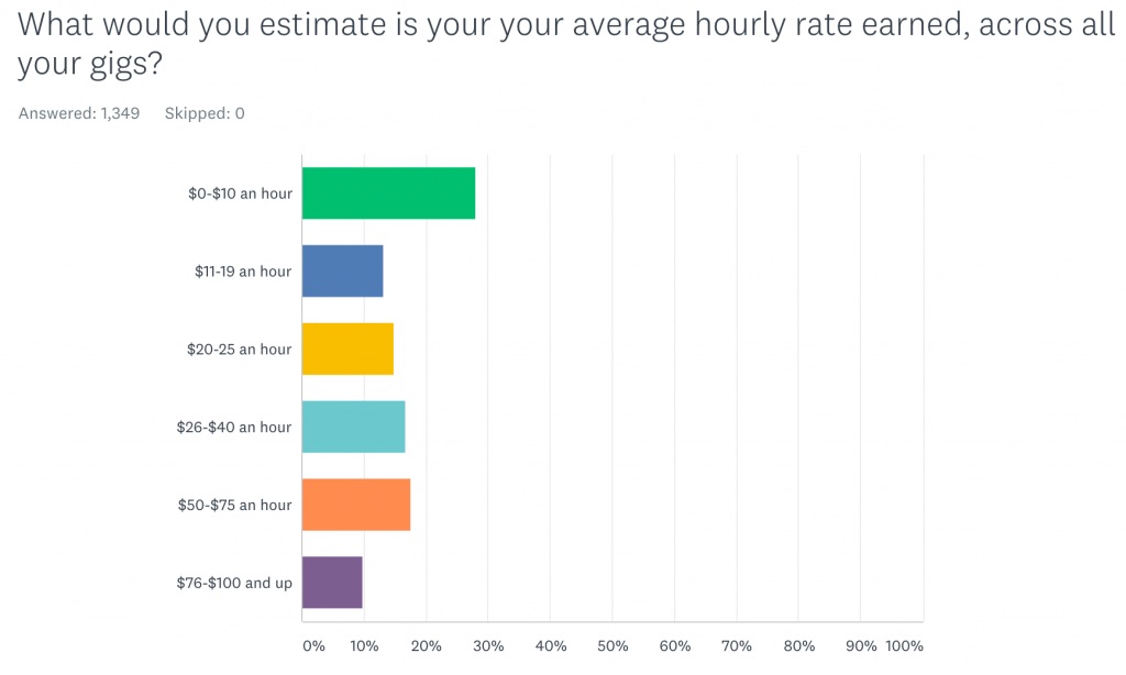 Il sondaggio del 2019 su 1.400 scrittori condotto da Carol Tice su makealivingwriting.com fornisce un'analisi molto più dettagliata dell'esperienza e delle tariffe degli scrittori.