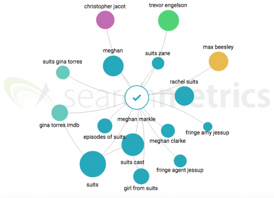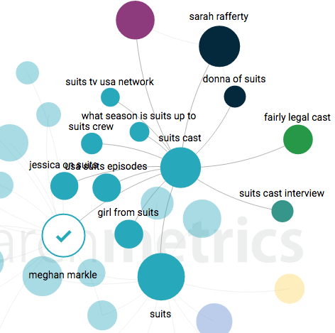 Ad esempio, se pensi all'intento di ricerca, potresti spigolare dai cluster statunitensi che gli utenti vogliono sapere come la troupe di Suits cancellerà Markle dallo spettacolo quando lascerà la sua carriera alle spalle per diventare la Duchessa del Sussex. La uccideranno? Un'altra attrice si trasferirà nel personaggio? Mike sarà in grado di andare avanti dopo che se ne sarà andata? Chi sarà il suo nuovo interesse amoroso? Lo spettacolo manterrà il suo status di nono programma televisivo più popolare al mondo (secondo Parrot Analytics) senza Rachel Zane?