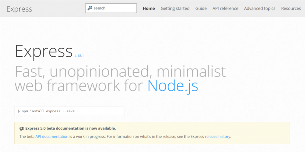 Poiché Express è scritto in Javascript, è molto facile da capire per lo sviluppatore che conosce Javascript. Fino ad ora, Express è il framework più popolare di Node Js. Aziende come GoDaddy, Walmart, Storylines e Flickr utilizzano ExpressJS.