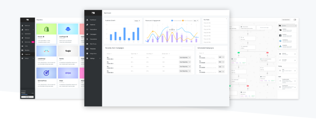 "Dal primo "ciao" al cliente fino al fan, sposta facilmente gli abbonati alla fase successiva con il nostro generatore di campagne. Attiva sequenze di e-mail mirate e personalizzate in base all'azione di un abbonato. Utilizza la nostra dashboard di analisi per vedere quante persone aprono le tue e-mail, fanno clic sui collegamenti, visitano il tuo sito Web, effettuano una vendita e altro ancora.