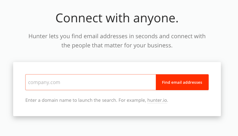 “Trova qualsiasi email in meno di cinque secondi. Clearbit Connect rende facile entrare in contatto con chiunque, direttamente dalla tua casella di posta. Nel corso degli anni, i cacciatori di e-mail intraprendenti hanno escogitato ogni sorta di strategie di ricerca. I primi tentativi si basavano su vecchie congetture. Gli anni successivi hanno visto i venditori passare le giornate a setacciare centinaia di pagine di siti Web e account di social media. Oggi più di 300.000 marketer e venditori utilizzano un approccio più semplice e intelligente: Clearbit Connect. Stiamo ricapitolando la storia della ricerca di e-mail, dalle prime tattiche preistoriche, fino ai potenti strumenti basati sui dati di oggi. Basta digitare il nome dell'azienda che stai tentando di contattare e vedere immediatamente i contatti disponibili su quell'account.