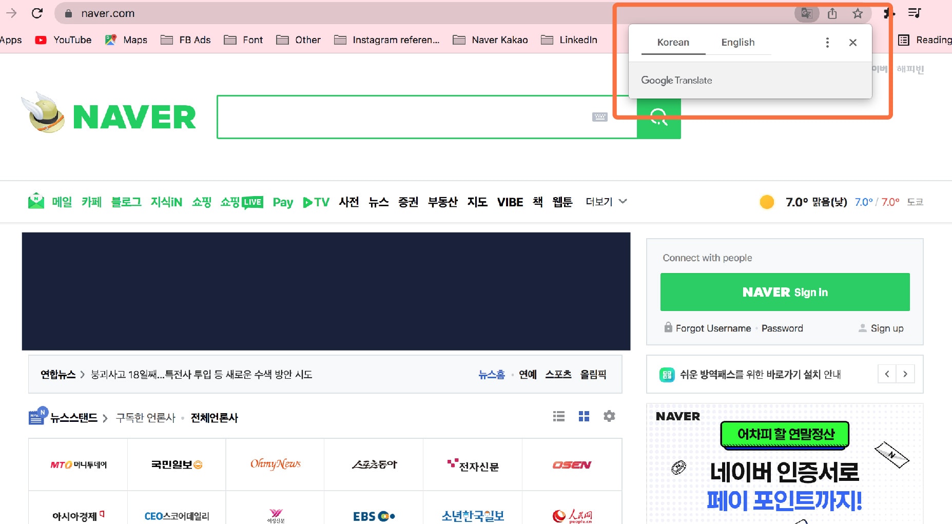 Esistono diversi modi per utilizzare "Naver" in inglese. Prima che Naver sviluppasse i propri strumenti di traduzione, il metodo più comune era utilizzare l'estensione Google Translate su Chrome. Ora esiste una versione inglese dell'app Naver, che la rende più popolare tra i non nativi.