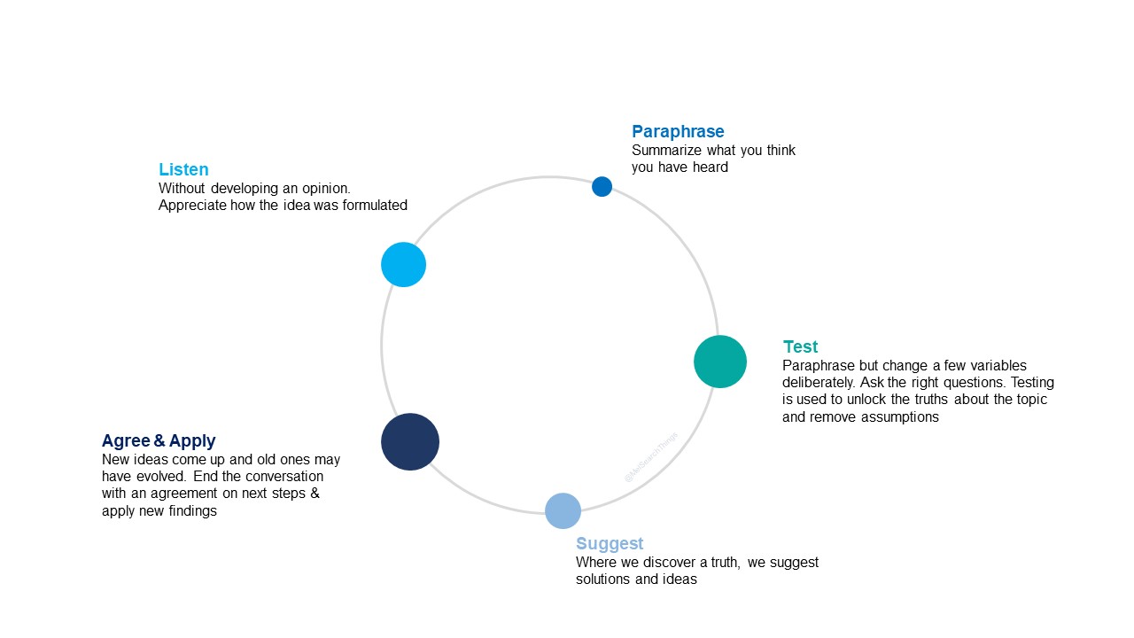 Parafrasare ma modificare deliberatamente alcune variabili. Verifica se il risultato della parafrasi è coerente. Il test garantisce l'assenza di sottigliezze imperdibili e aiuta a rimuovere l'ambiguità. Viene anche usato per svelare le verità sulla questione.