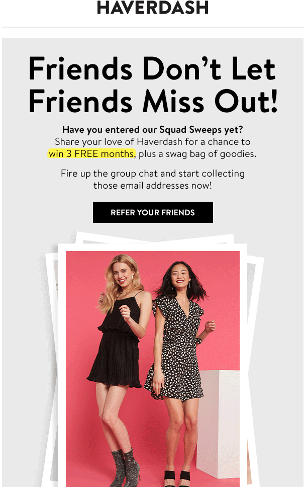 Esempio: Haverdash ha inviato una campagna e-mail quando ha introdotto una voce omaggio a tempo limitato per i referrer e gli arbitri.