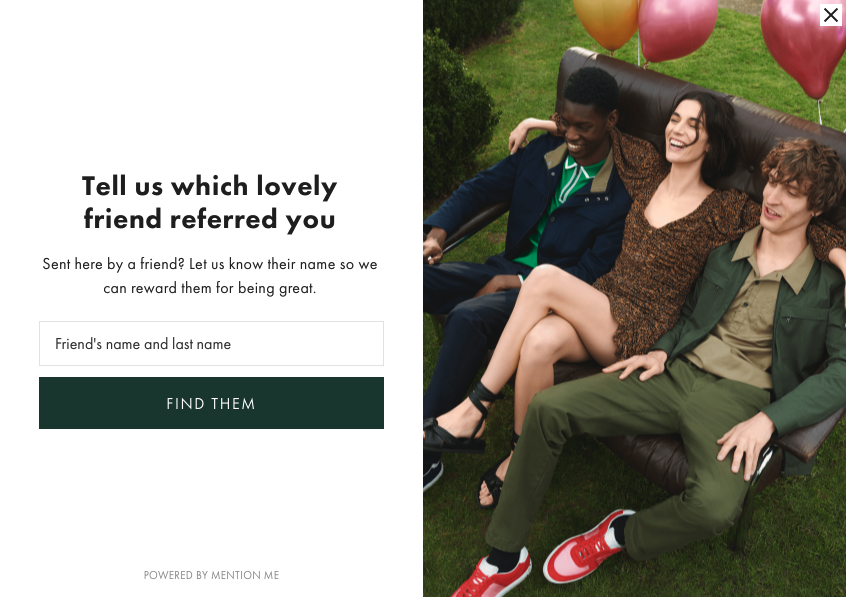 Un programma di riferimento non ha valore se i tuoi clienti non ne sono a conoscenza. Puoi, ad esempio, aggiungere un widget (simile al widget di chat) su tutte le pagine che richiede agli utenti di segnalare il marchio ai propri amici. Ecco alcune altre opzioni per un'ottima UX di riferimento:
