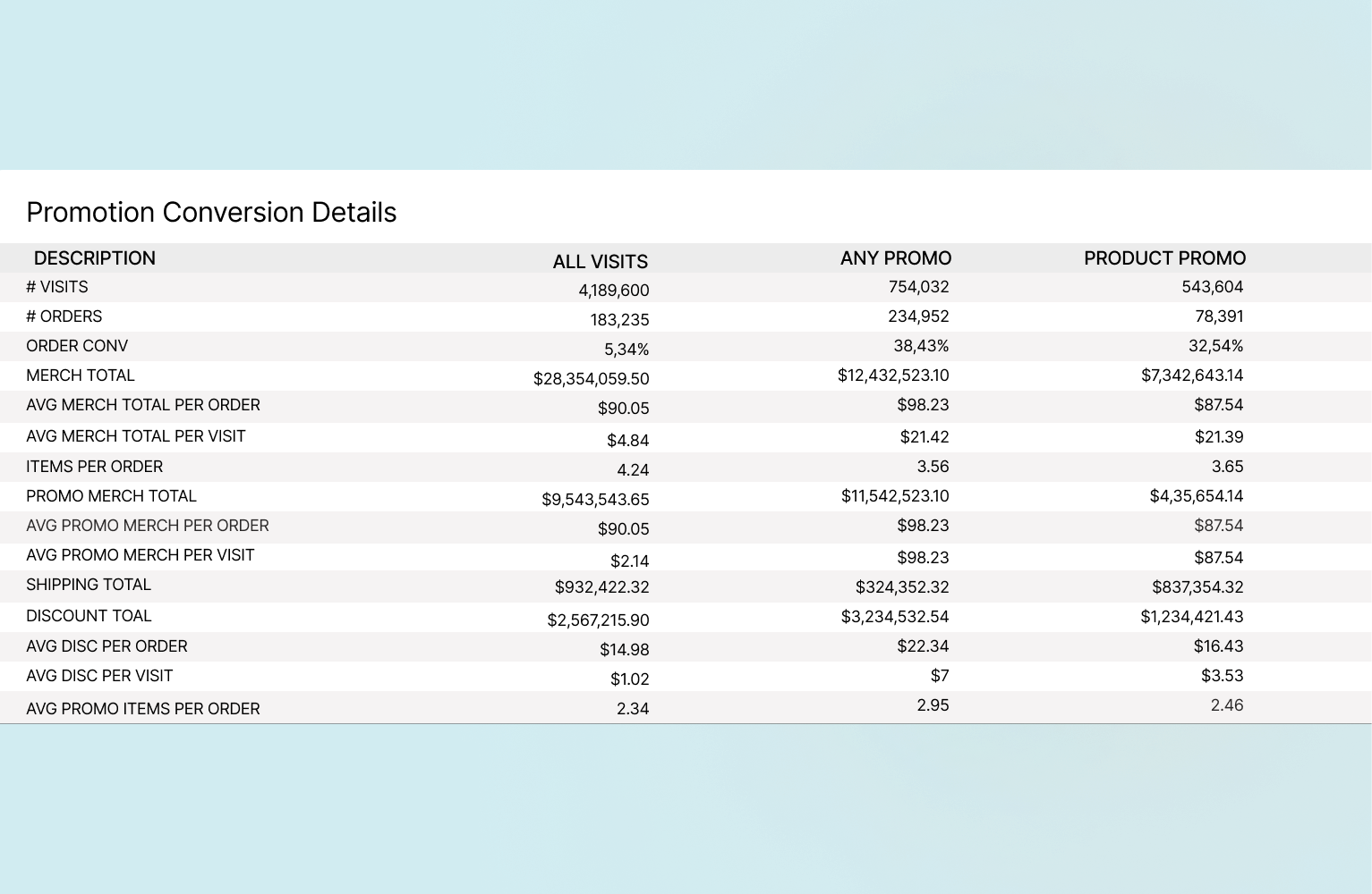 Prima di addentrarci nel dettaglio del calcolo del ROI delle promozioni e delle metriche specifiche, diamo un'occhiata ad alcuni dati cruciali per il reporting delle promozioni.