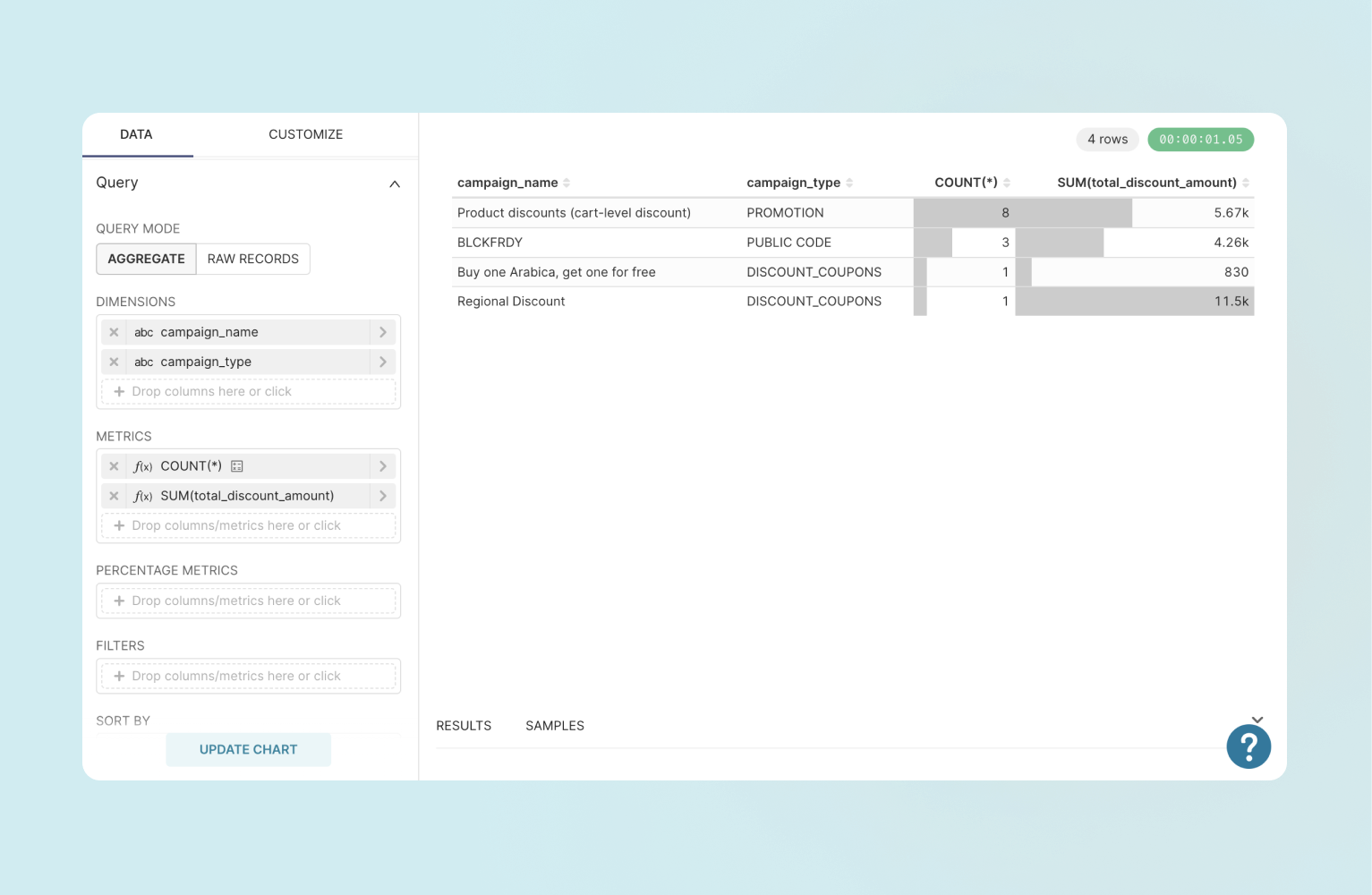 Naturalmente, per l'analisi BI pronta per la produzione, dovresti estrarre più dati da Voucherify, tra cui: