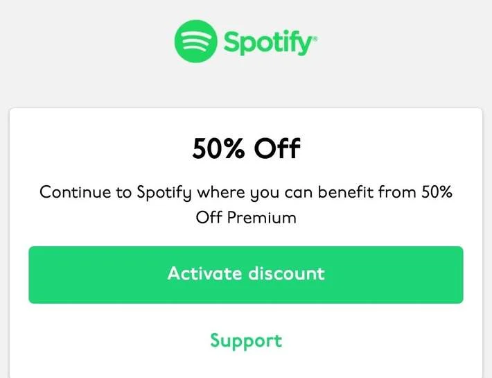 Spotify offre uno sconto del 50% sul suo abbonamento Premium agli studenti idonei.