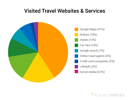 I siti web e i servizi di viaggio visitati sono distribuiti come segue: