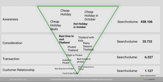- Let's-book-it-moments: ora l'utente ha terminato la ricerca e inizia a prenotare ad esempio hotel e biglietti aerei. Ciò include query di ricerca come "volo Phuket" o "hotel a Phuket".